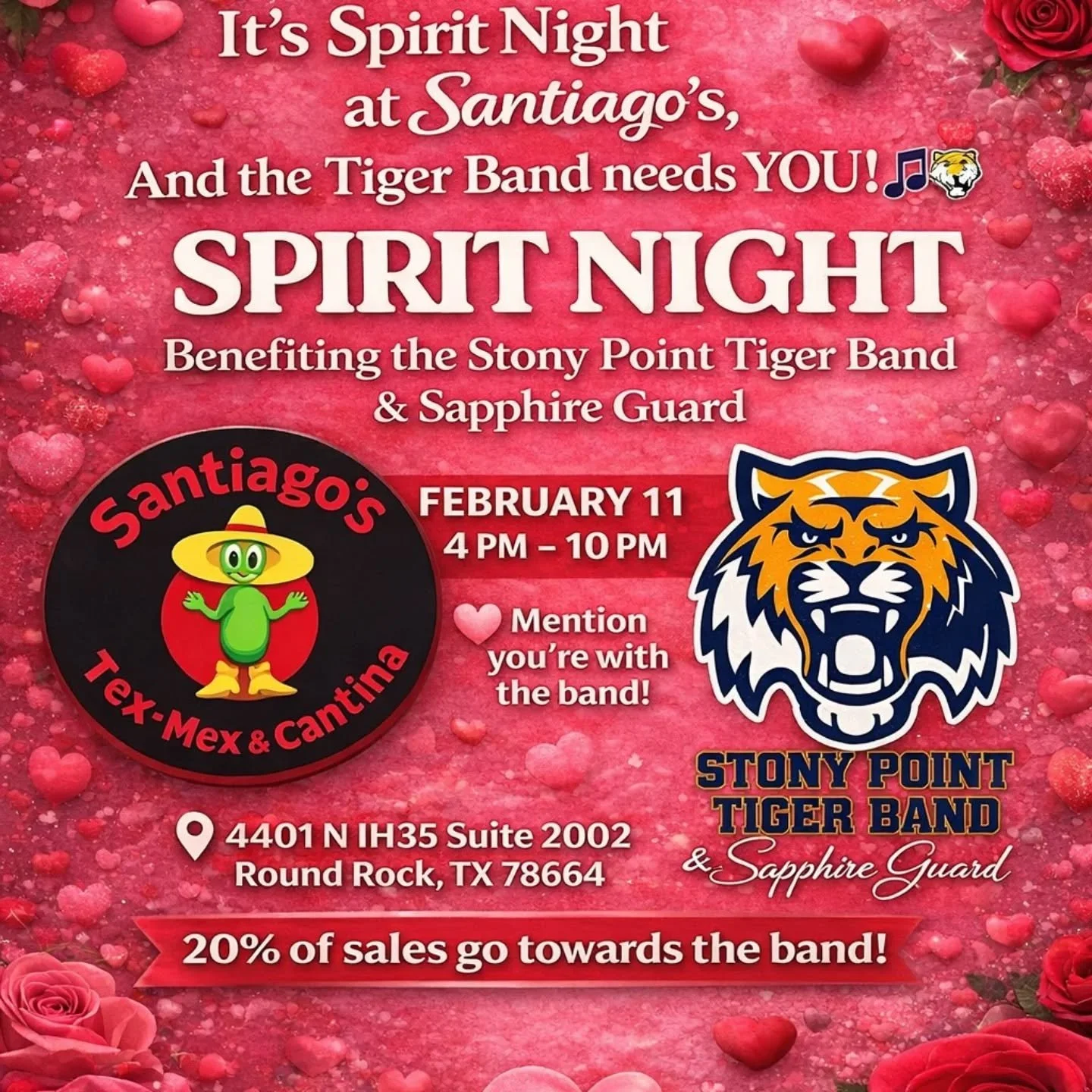 Support the Stony Point Tiger Band & Sapphire Guard this Spirit Night at Santiago’s Tex-Mex!