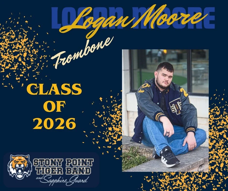 View fullsize Help us celebrate Stony Point Tiger Band and Sapphire Guard senior Logan Moore!