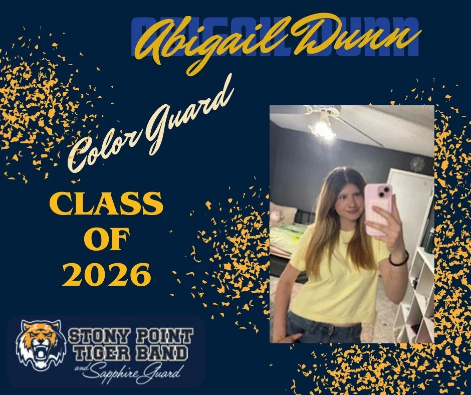 View fullsize Help us celebrate our 2026 Stony Point Tiger Band and Sapphire Guard senior Evalyn Garza!