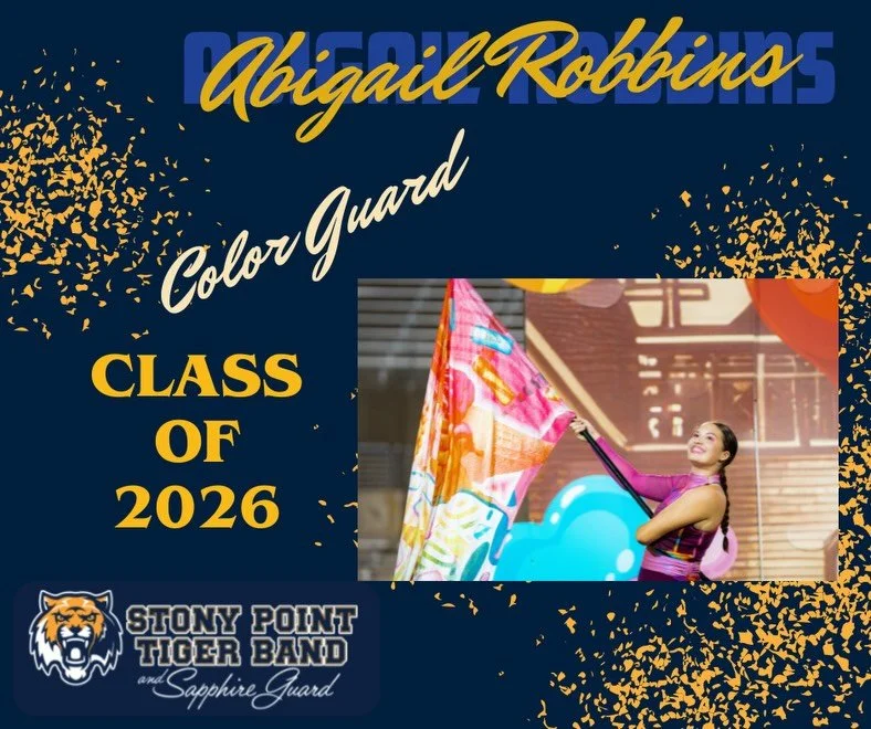 View fullsize Help us celebrate our 2026 Stony Point Tiger Band and Sapphire Guard senior Sebastian Stagge!